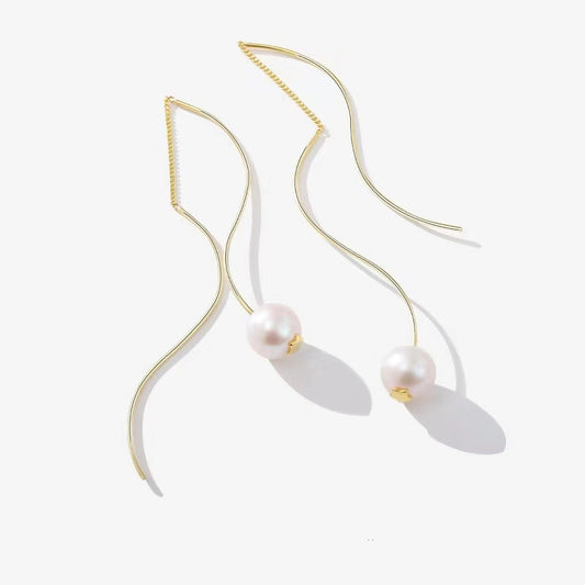Genuine Freshwater Pearl S925 Silver Streamline Earrings