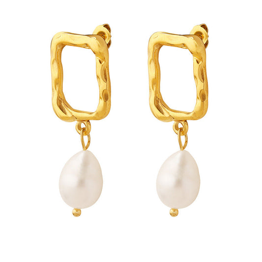 Genuine Freshwater Pearl Titanium Steel Irregular Earrings