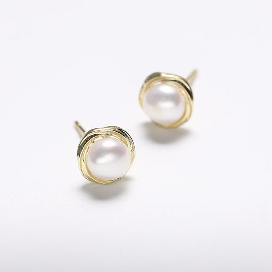 Pendientes de flor en espiral de plata maciza S925 con perlas de agua dulce auténticas