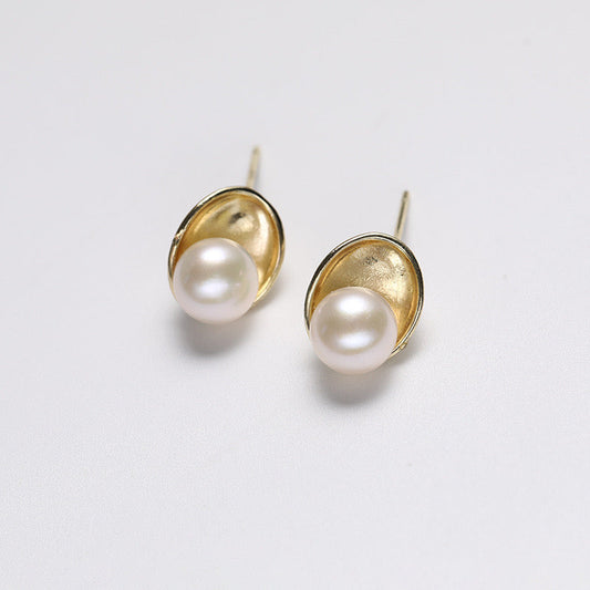 Pendientes Grace Lily de plata maciza S925 con auténtica perla de agua dulce