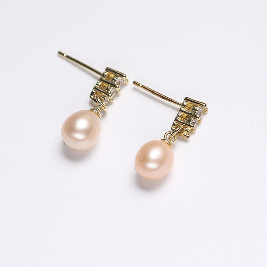 Pendientes delicados de plata maciza S925 con auténtica perla de agua dulce