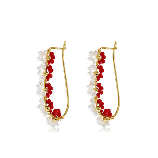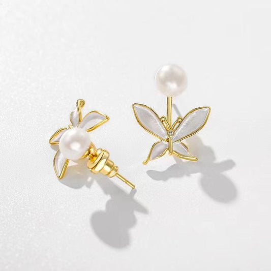 Pendientes de flor de granada con auténtica perla de agua dulce