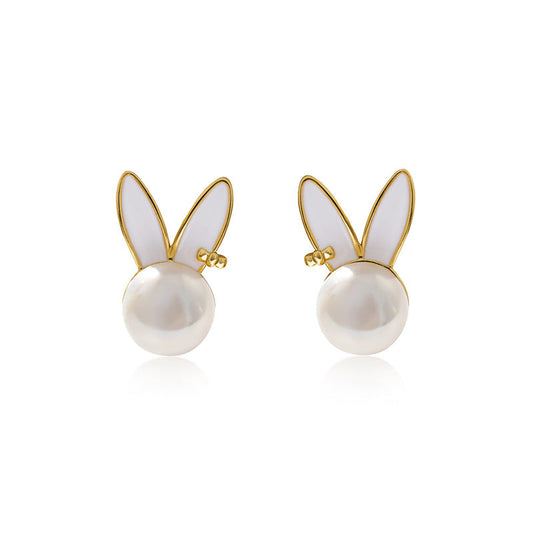 Pendientes de conejo con perlas de agua dulce auténticas