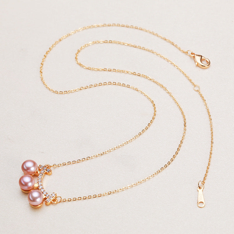 Collar con forma de ángel sonriente y perla de agua dulce genuina bañada en latón y oro de 18 quilates.