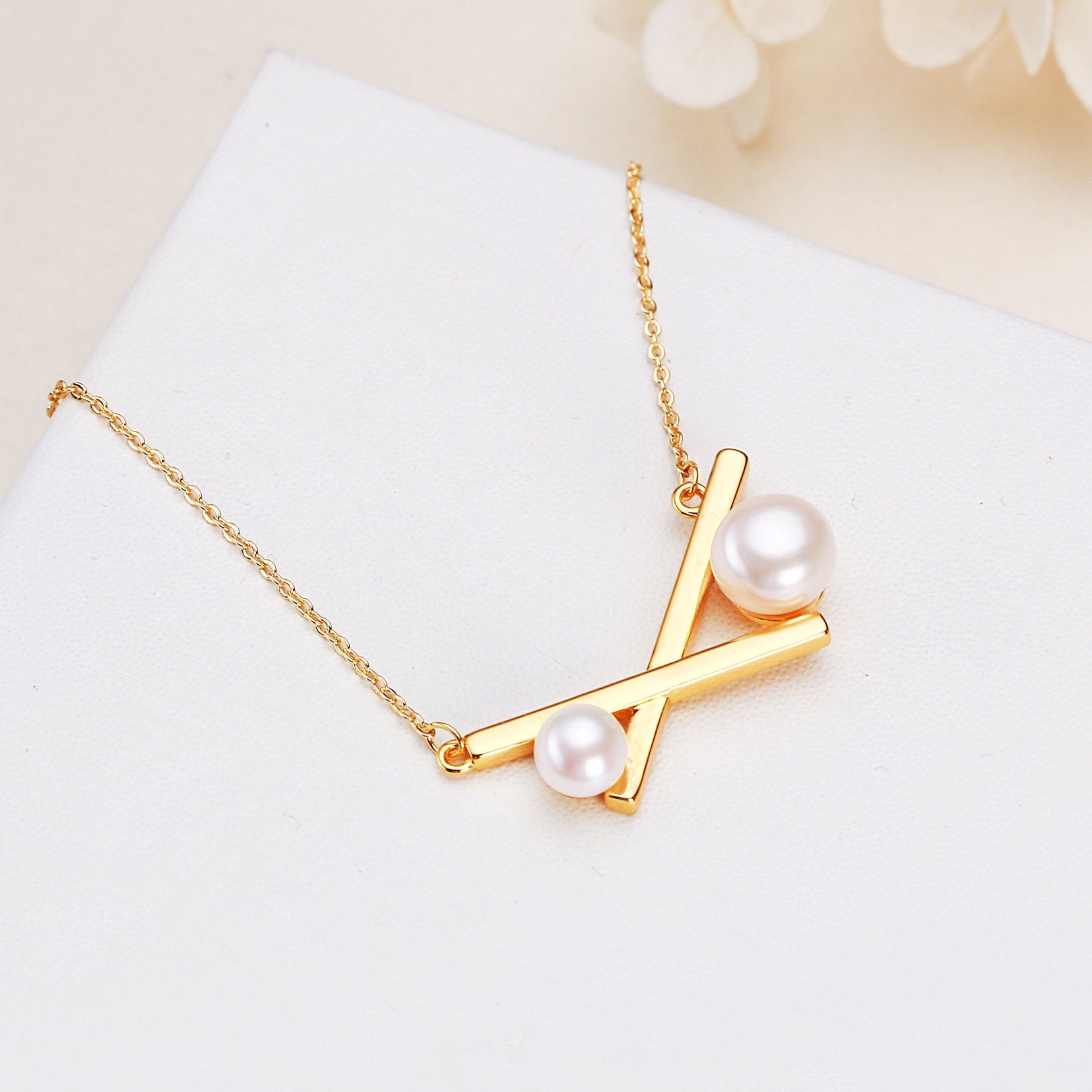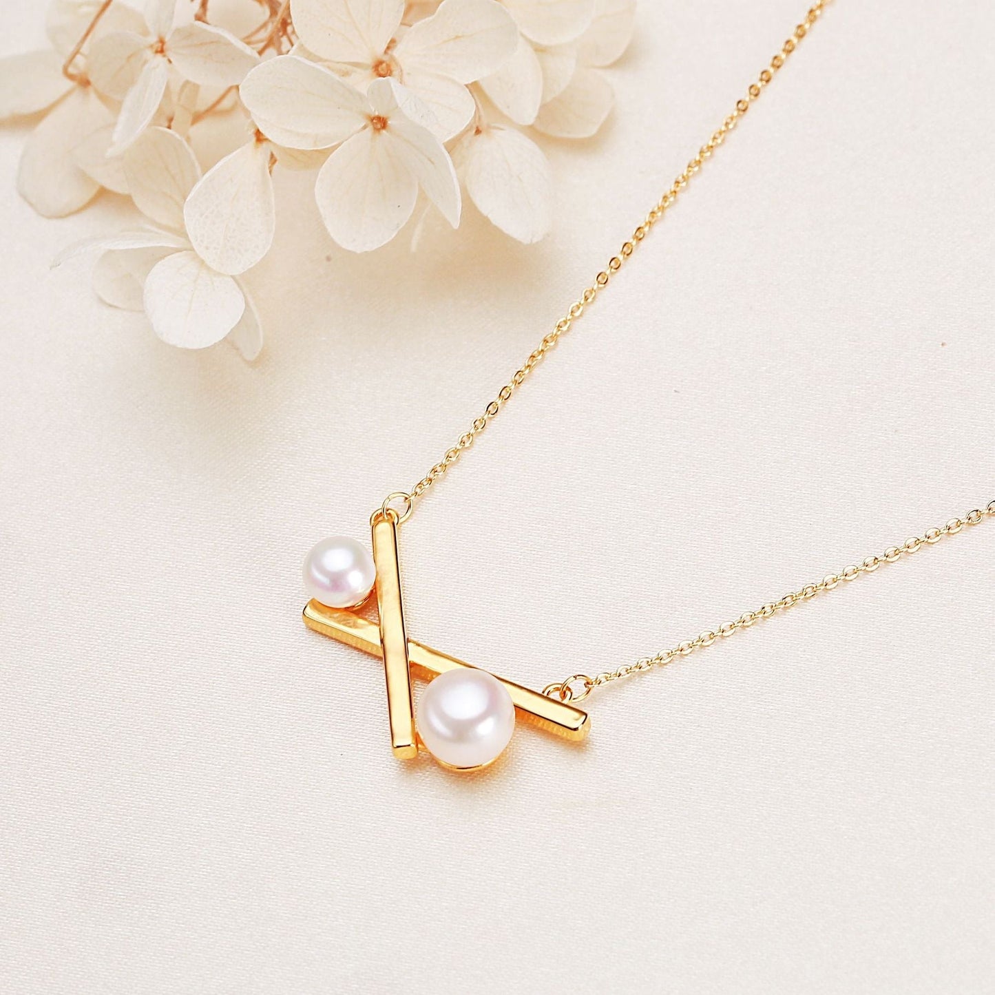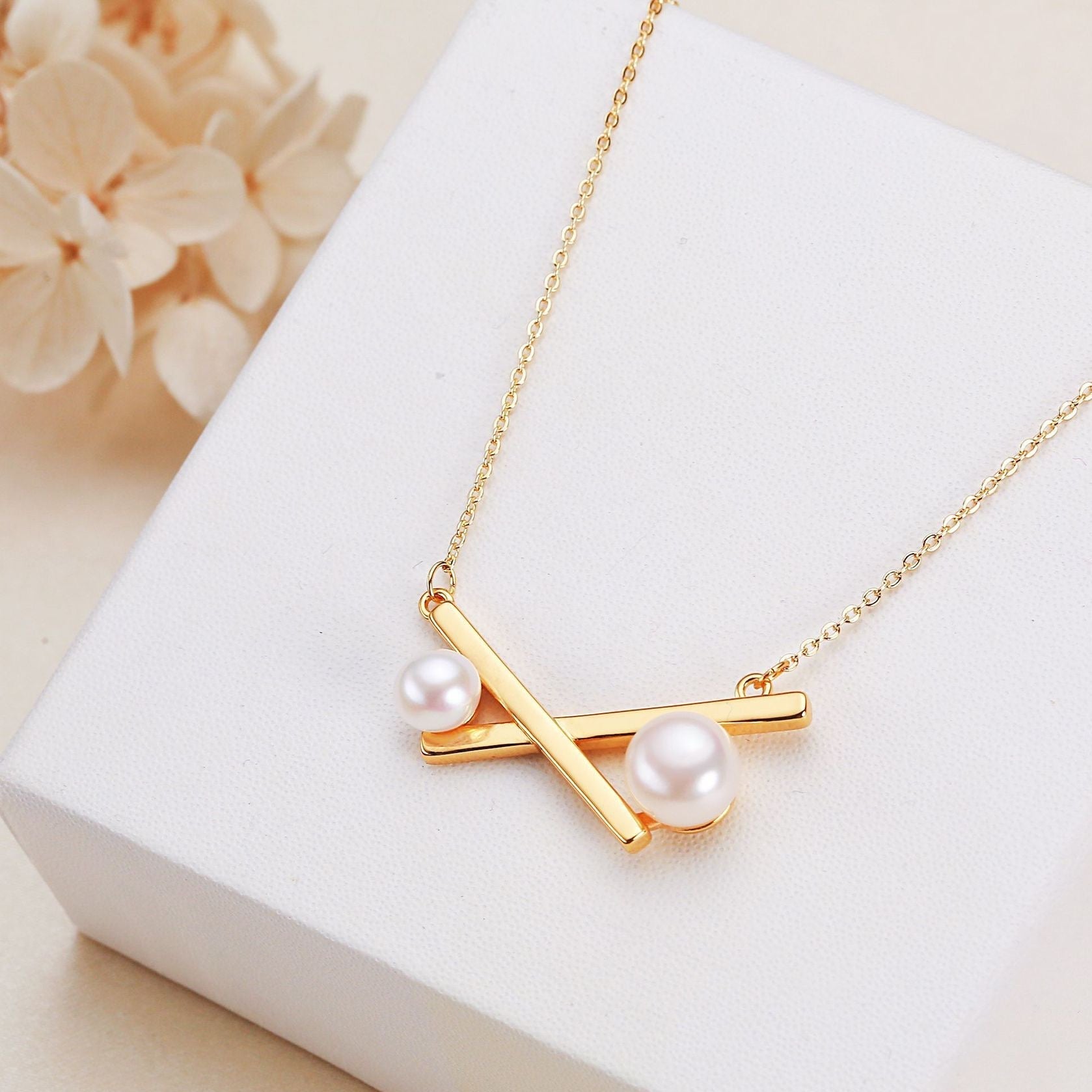 Collar de equilibrio de perlas de agua dulce genuinas bañado en latón y oro de 18 quilates