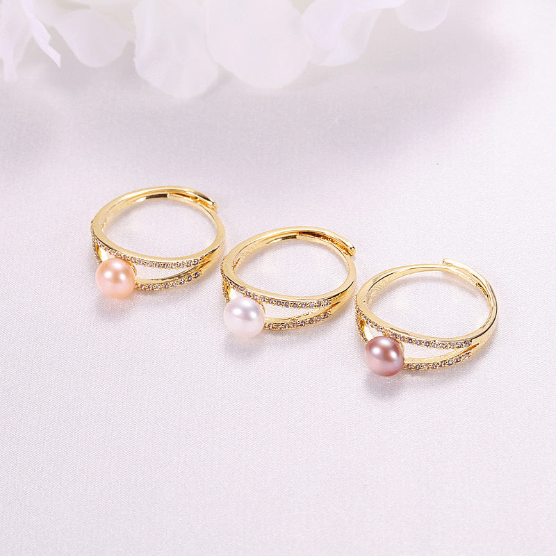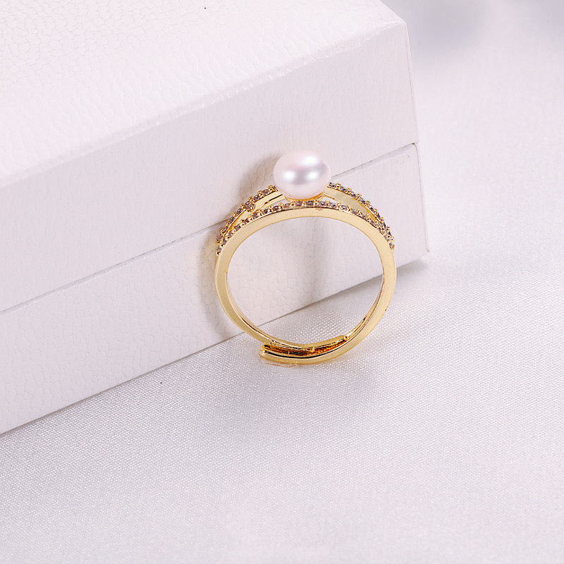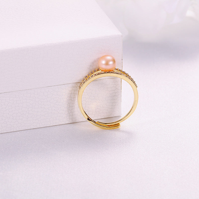 Anillo Salomé de latón bañado en oro de 18 quilates con auténtica perla de agua dulce