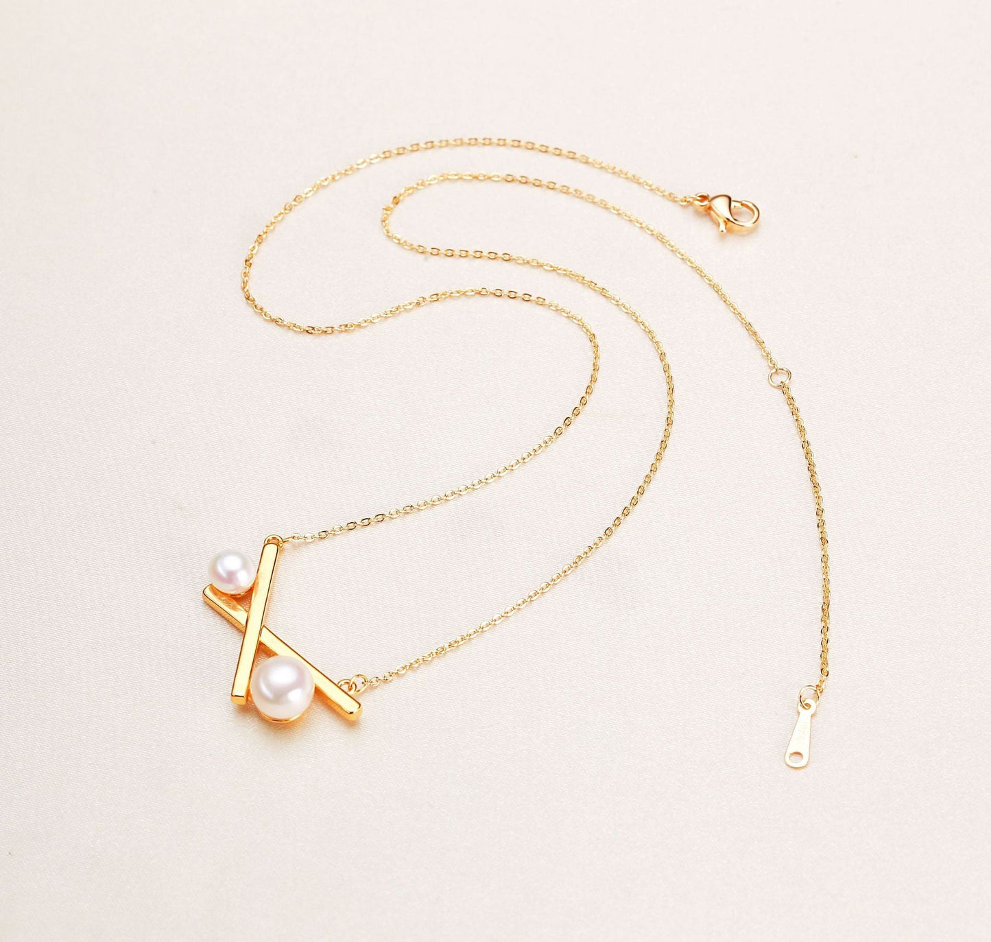 Collar de equilibrio de perlas de agua dulce genuinas bañado en latón y oro de 18 quilates