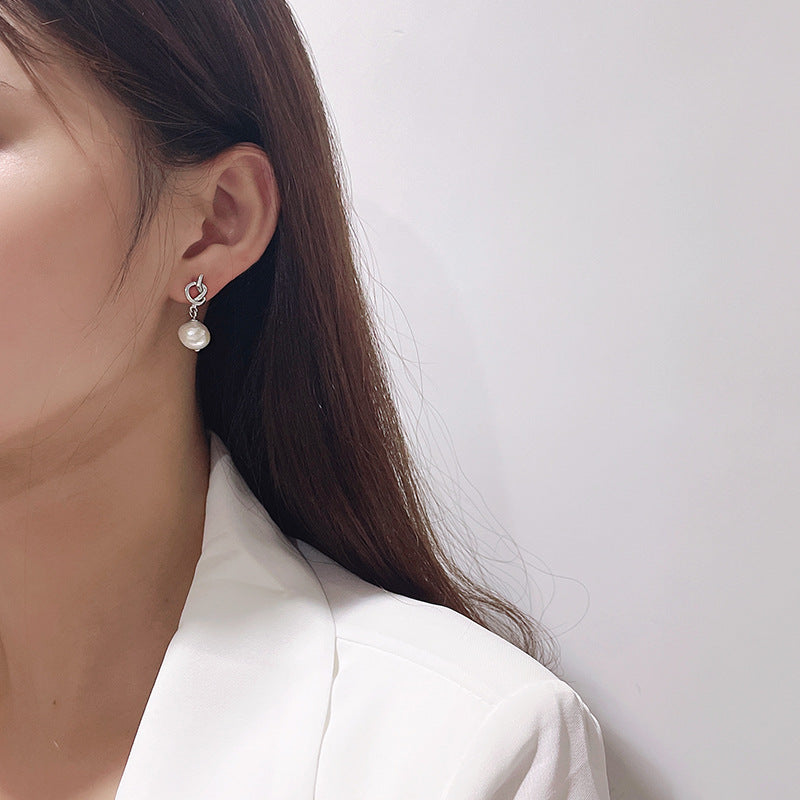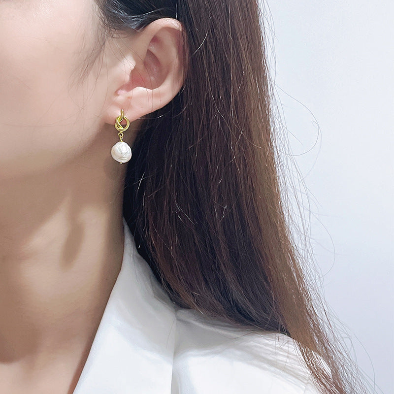 Pendientes de nudo de Dios de plata maciza S925 con perla barroca genuina
