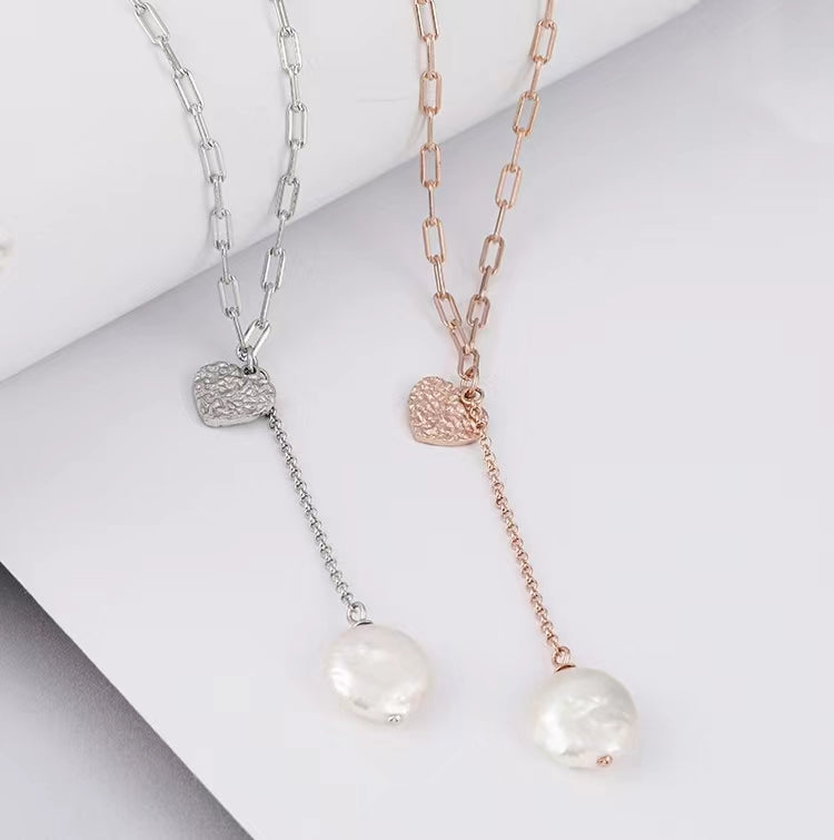 Collar de corazón de la suerte de plata maciza S925 con perla barroca auténtica
