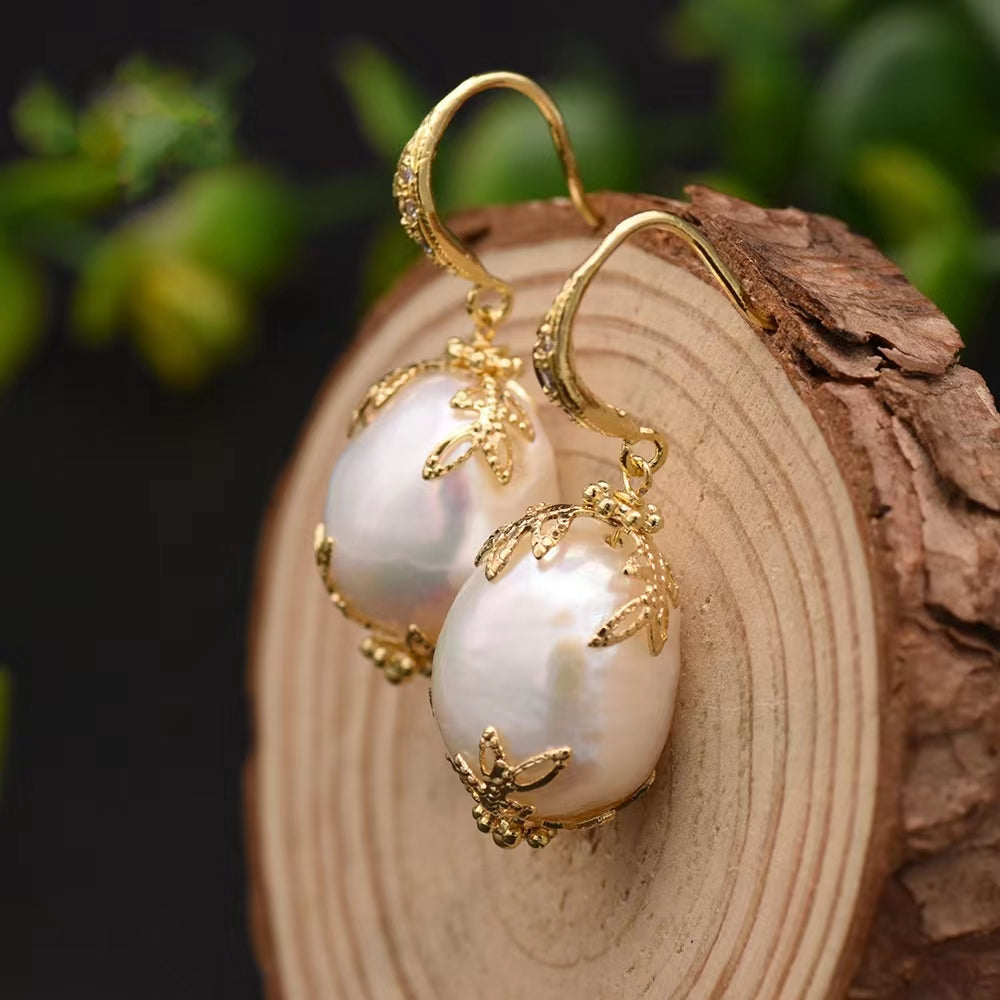 Pendientes Borough de auténtica perla barroca de agua dulce