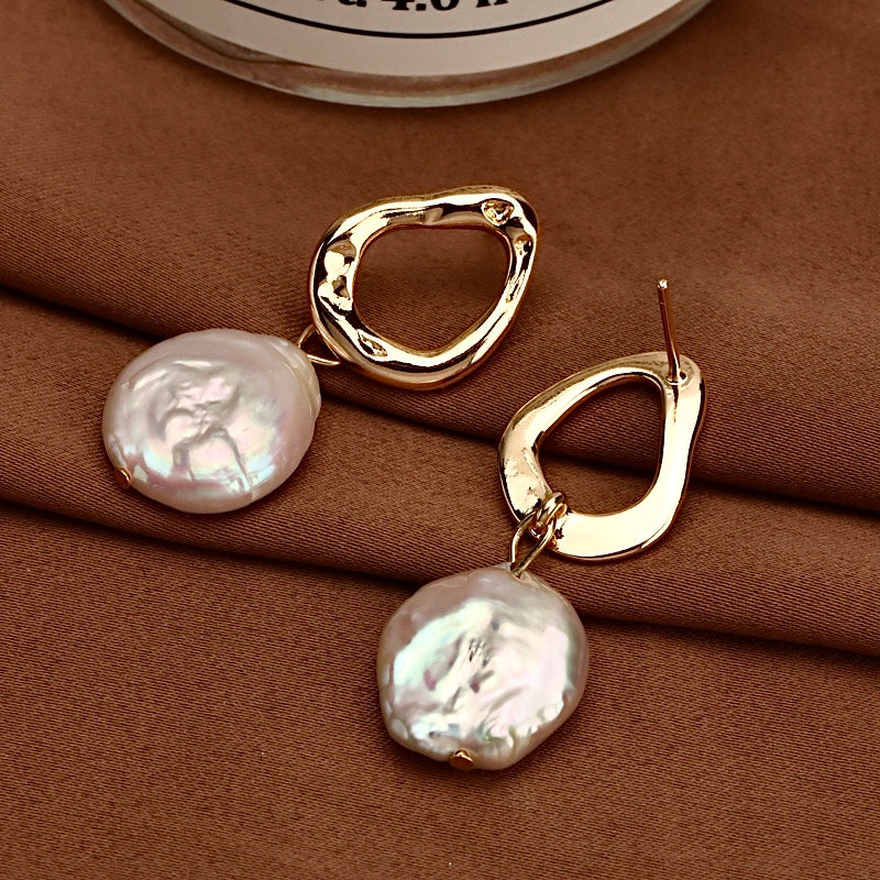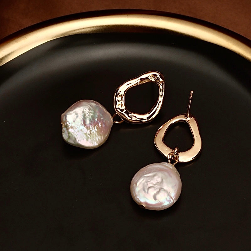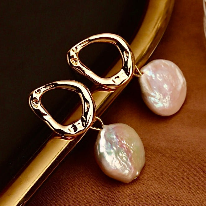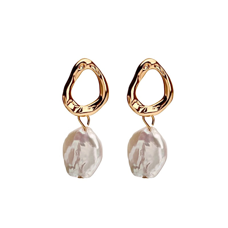 Pendientes de luna con auténtica perla barroca de agua dulce