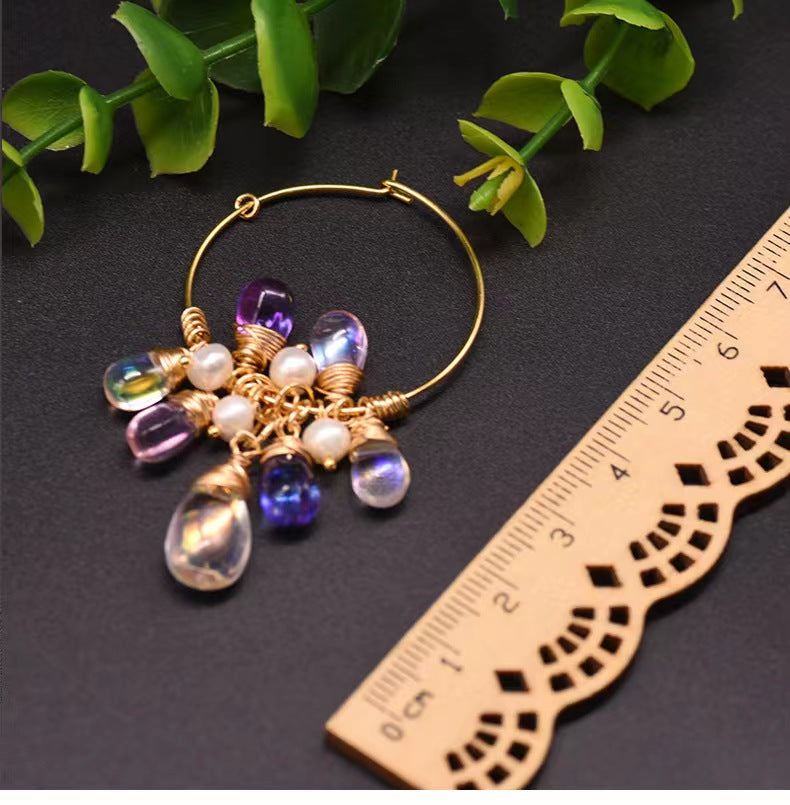 Pendientes de lágrima arcoíris con auténtica perla barroca de agua dulce