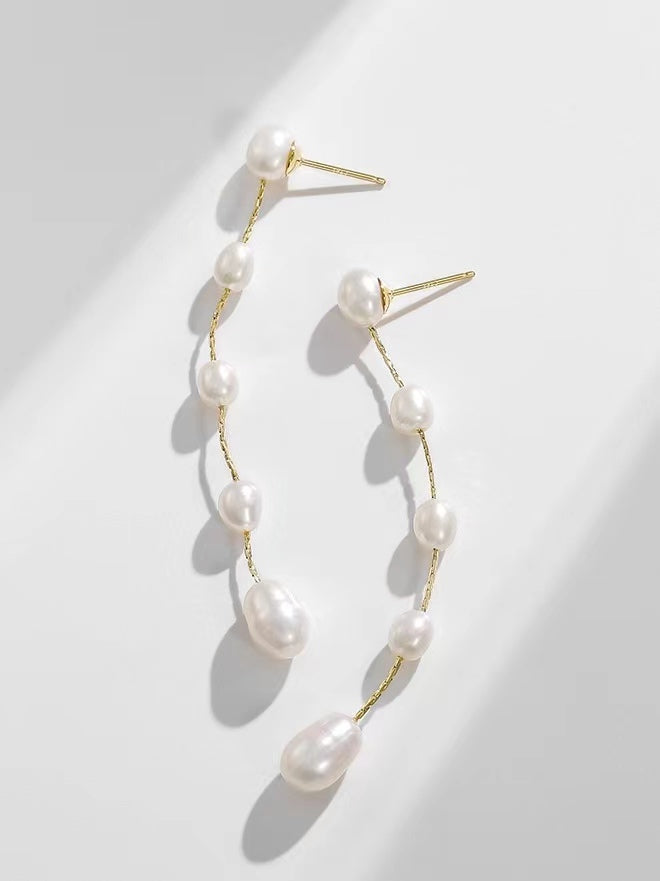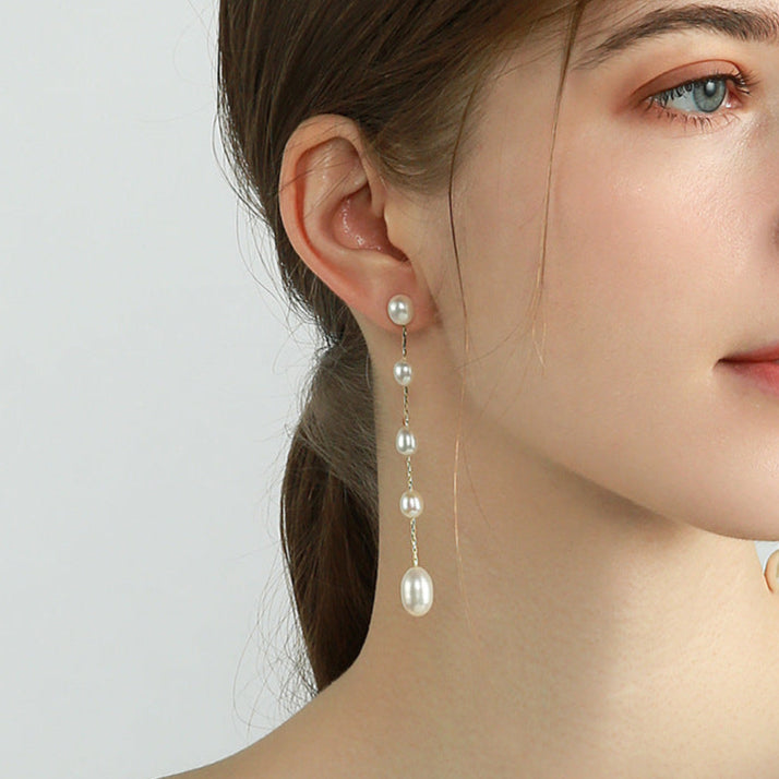 Pendientes de perlas de agua dulce auténticas con forma de lágrima matutina