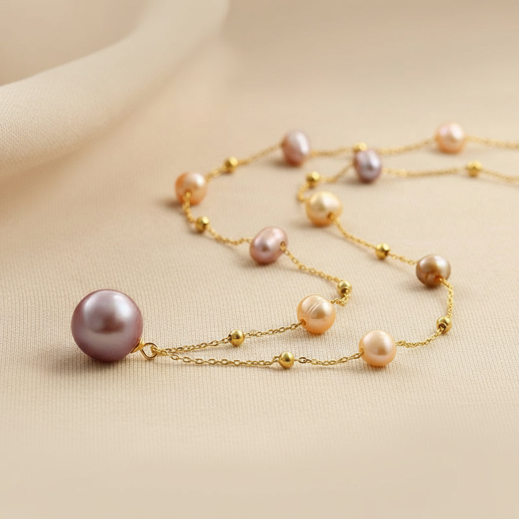 Este collar de perlas de agua dulce auténticas es una exquisita pieza de joyería. Elaborado a mano con esmero, luce perlas brillantes de un tono vibrante y luminoso. Su sofisticado diseño lo convertirá en una pieza atemporal para cualquier armario.