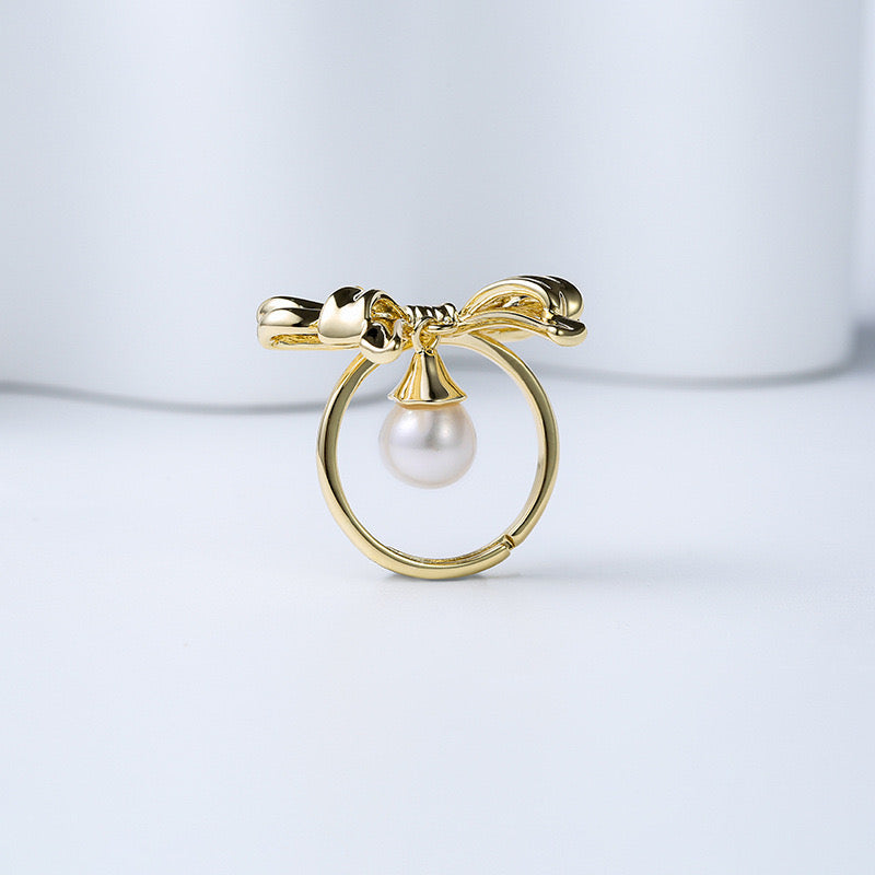 Disfrute del lujo con nuestro Anillo de Pajarita Feliz de Perla de Agua Dulce Genuina. Hecho a mano con una brillante perla de agua dulce, este exquisito anillo presenta un divertido diseño de pajarita que le dará un toque de alegría a su día. Realce su estilo con esta elegante y exclusiva pieza.