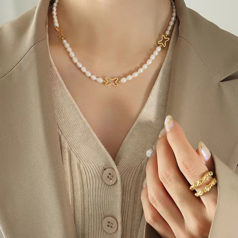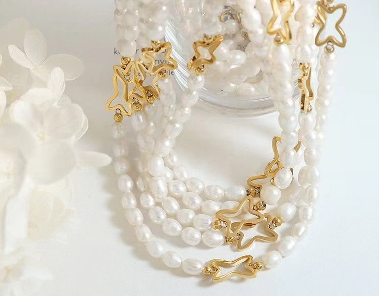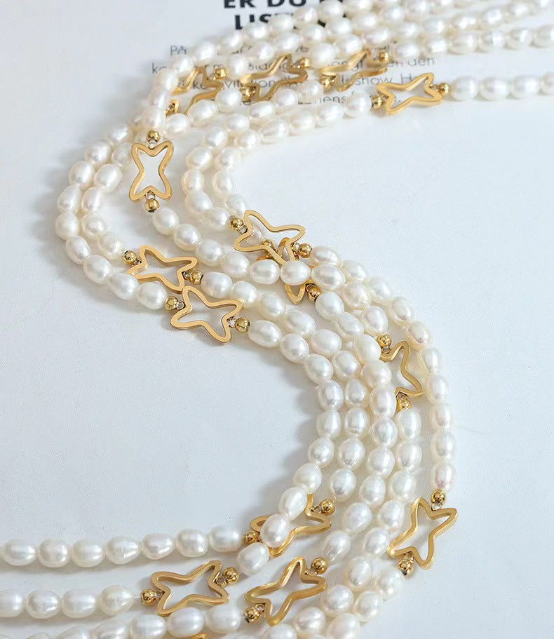 Collar de estrella fugaz de titanio con perla de agua dulce genuina