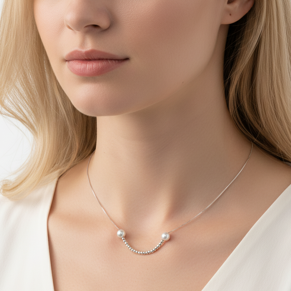 Genuine Akoya Seawater Pearl Solid 925 Silver Necklace – Smile Chain Design