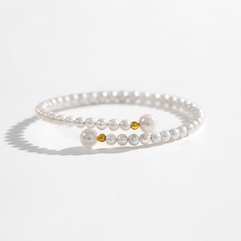 Pulsera de la paz con perla genuina de agua dulce AAAA en oro macizo de 18 quilates