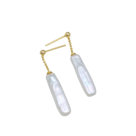 Boucles d'oreilles en forme de poisson rasoir avec véritables perles baroques d'eau douce