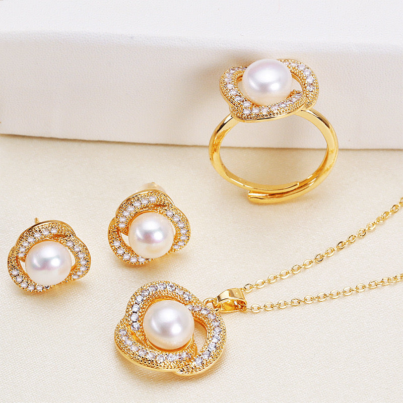 Cette parure Loving Angle en perles d'eau douce véritables plaquées or 18 carats est conçue pour une durabilité et une brillance exceptionnelles. Avec sa forme personnalisée et son laiton plaqué or 18 carats unique, elle est parfaite pour toutes les occasions spéciales. Les perles d'eau douce véritables ajoutent une touche d'élégance et de glamour, faisant de cette parure un bijou inoubliable.