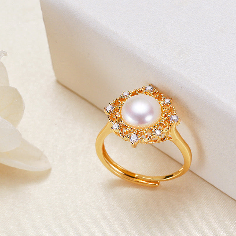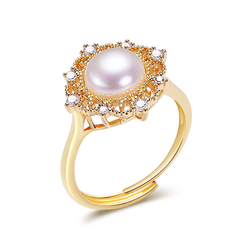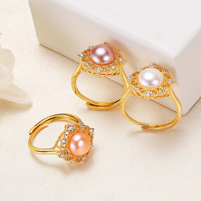Bague Roxanne en laiton plaqué or 18 carats avec véritable perle d'eau douce