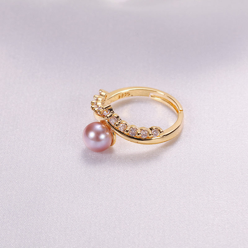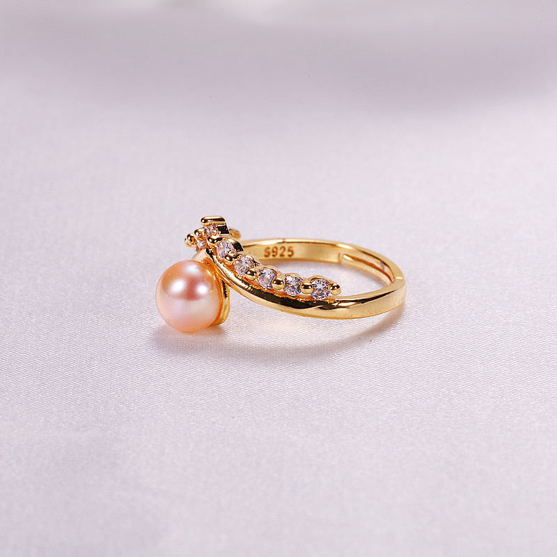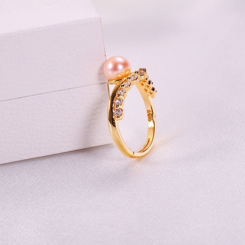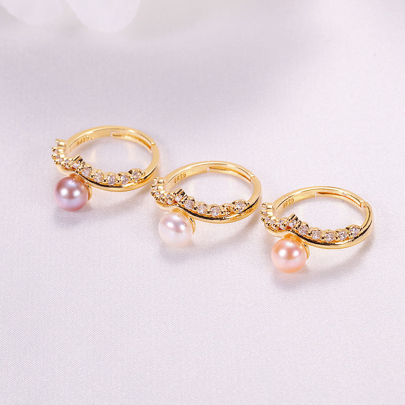 Bague Sharon en laiton plaqué or 18 carats avec véritable perle d'eau douce