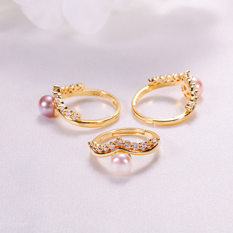 Sublimez votre look avec cette magnifique bague Sharon en laiton plaqué or 18 carats, ornée d'une perle d'eau douce véritable. Ornée d'un luxueux plaqué or 18 carats et d'une perle d'eau douce véritable lumineuse, ce bijou intemporel allie élégance et sophistication pour attirer les regards.