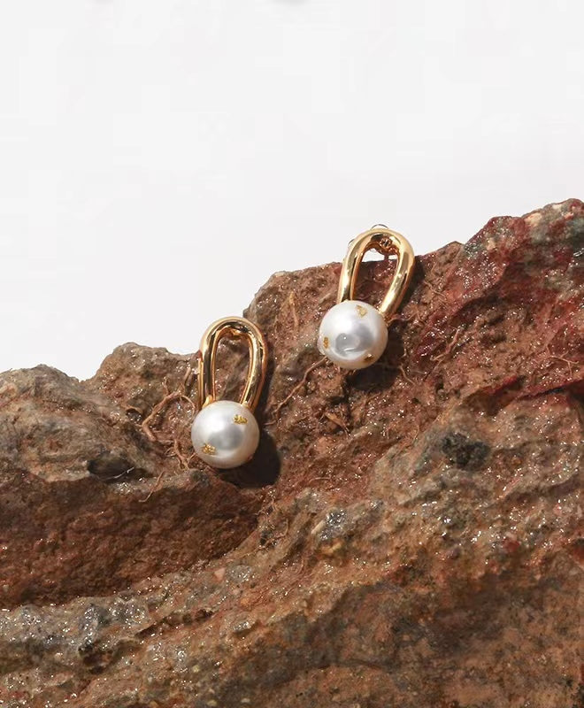 Boucles d'oreilles style fer à cheval en perles baroques d'eau douce véritables