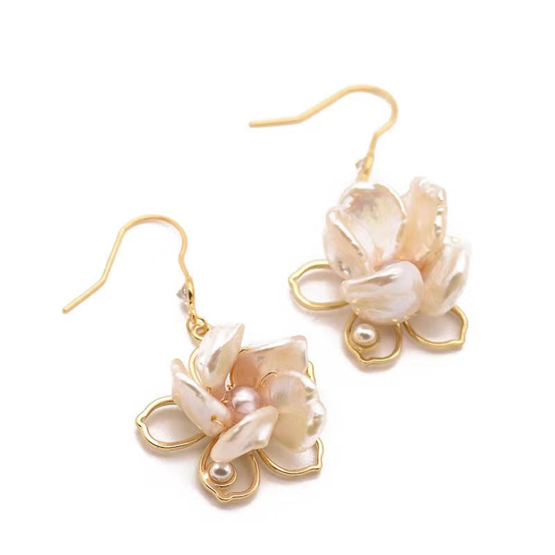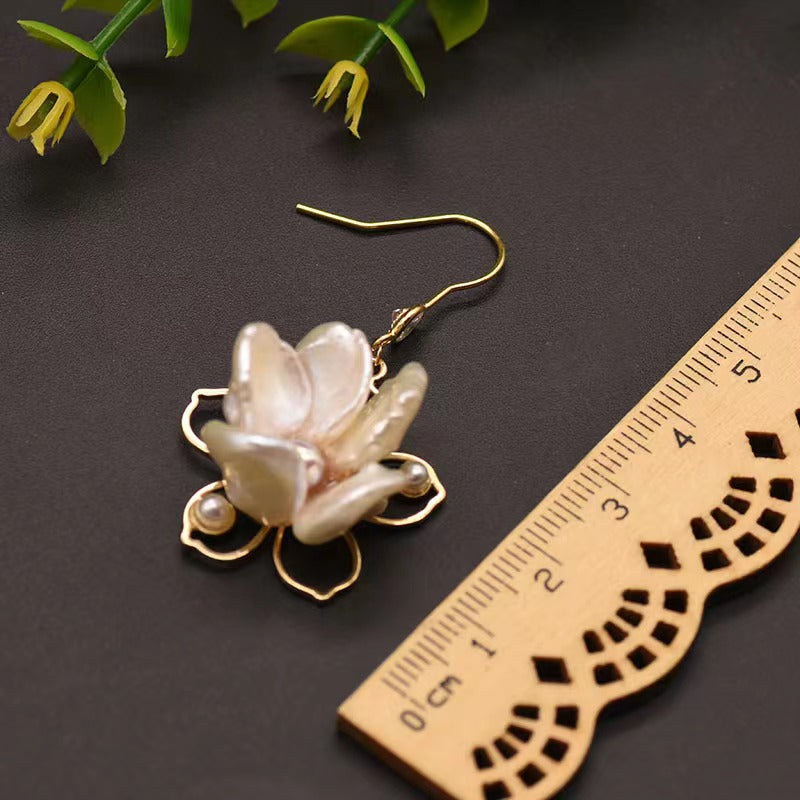Boucles d'oreilles Lotus en perles baroques d'eau douce véritables