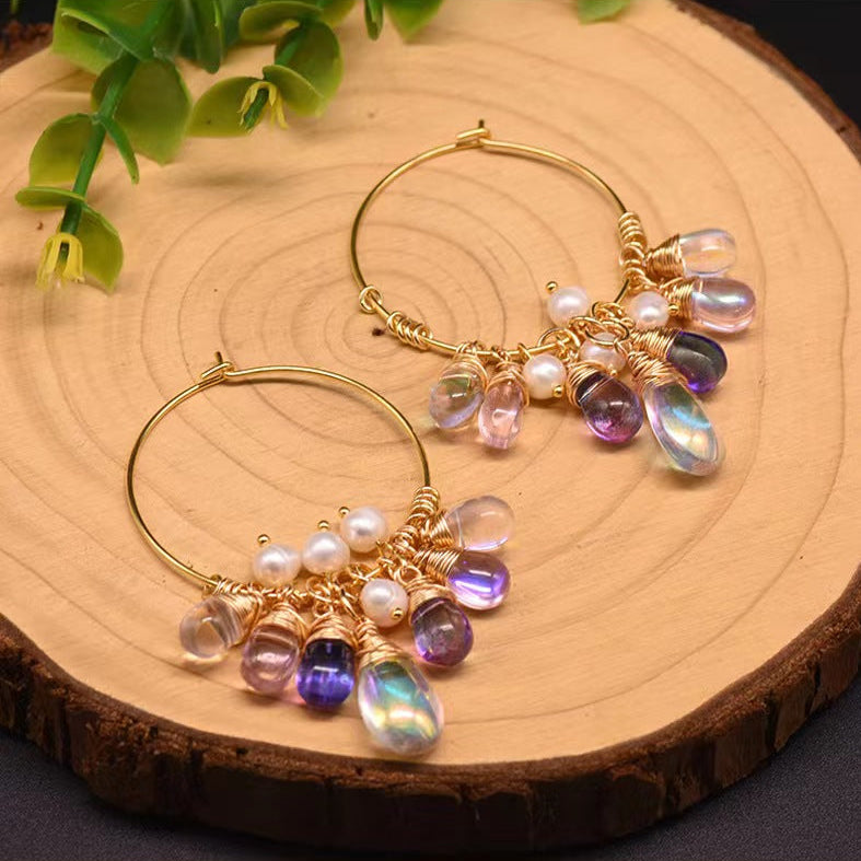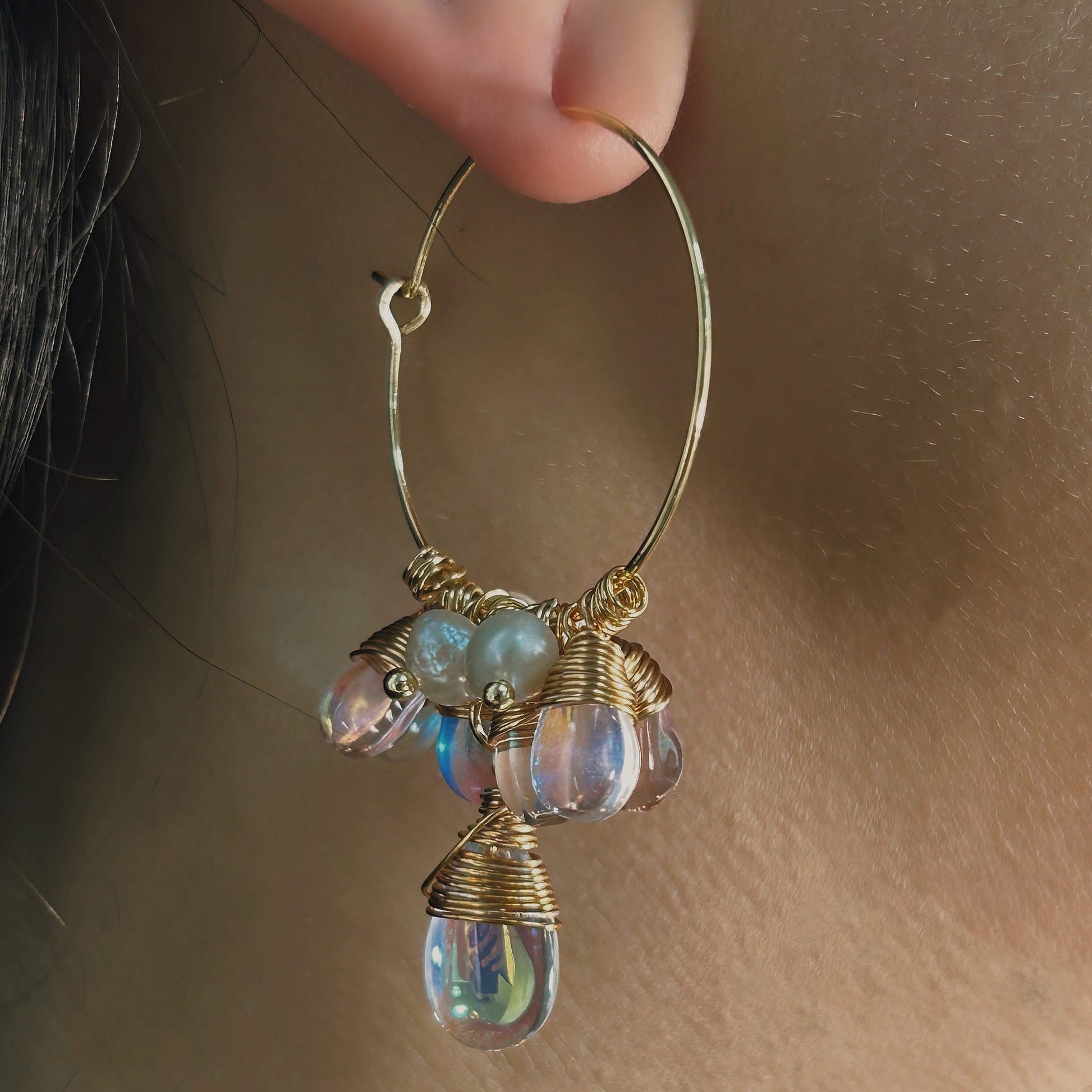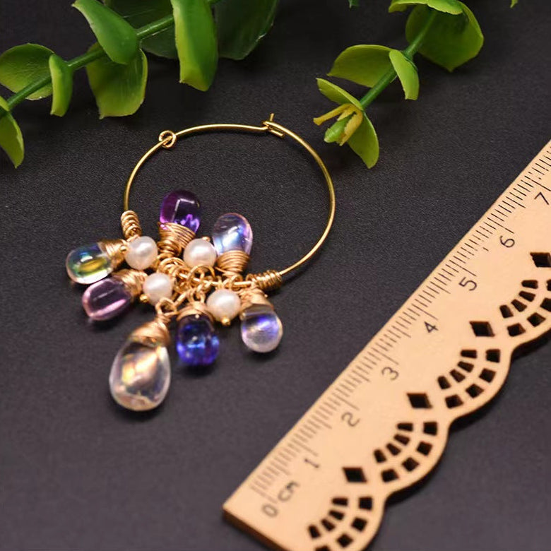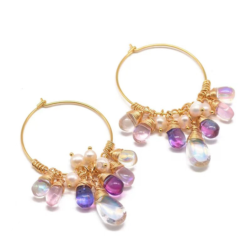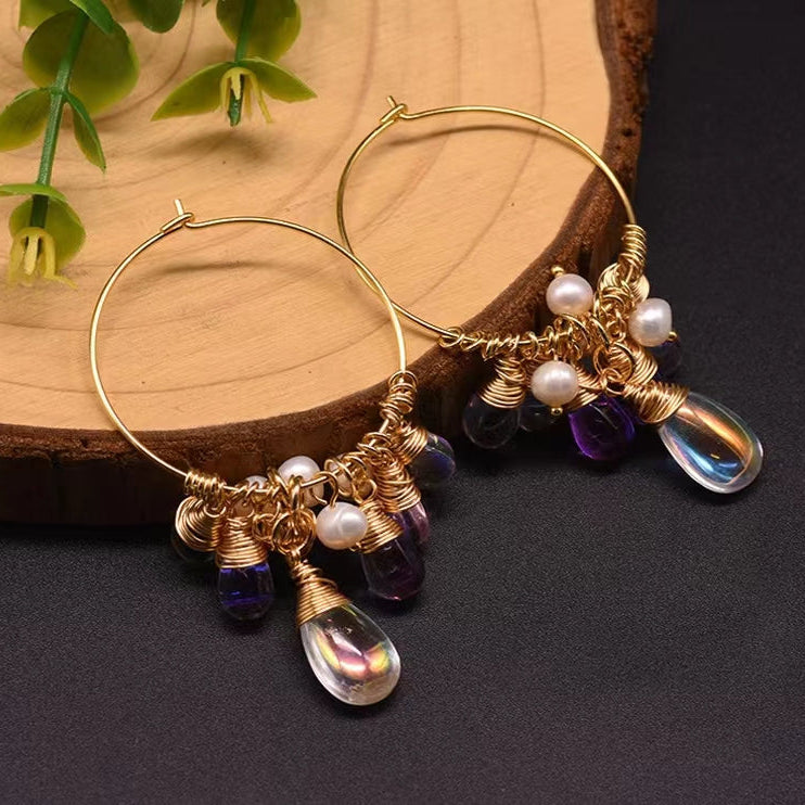 Boucles d'oreilles en perles d'eau douce baroques véritables en forme de larme arc-en-ciel