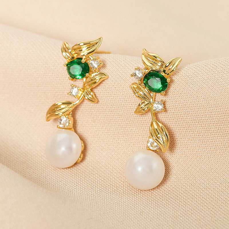 Boucles d'oreilles porte-bonheur en perles d'eau douce véritables vertes