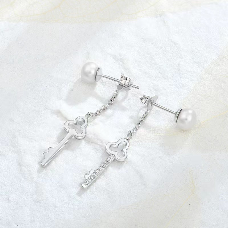 Boucles d'oreilles Clé de l'Amour en Perles d'Eau Douce Véritables
