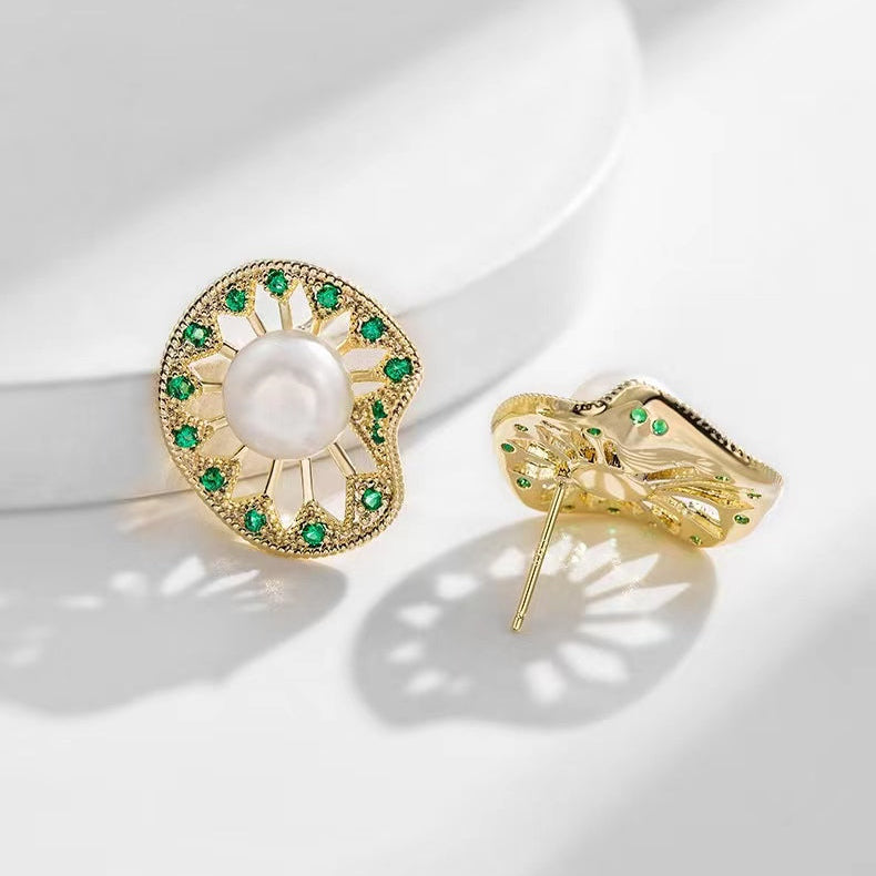 Inspirée par l'étang aux lotus, symbole de pêche et de bonheur, cette feuille de lotus est délicatement réalisée en perle d'eau douce et en oxyde de zirconium vert. Portez ces boucles d'oreilles seules ou avec le collier assorti.