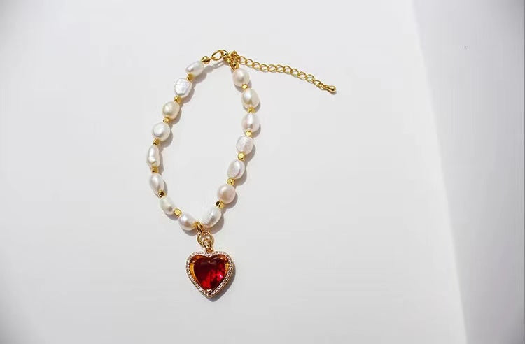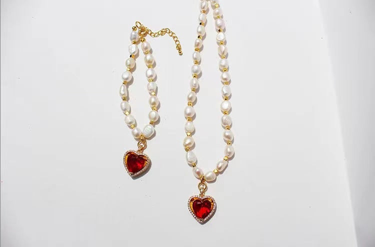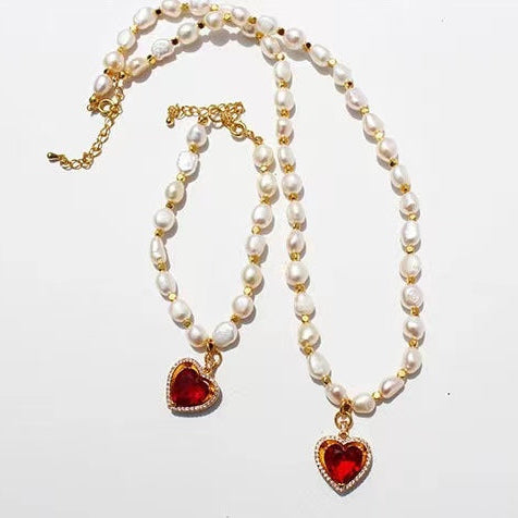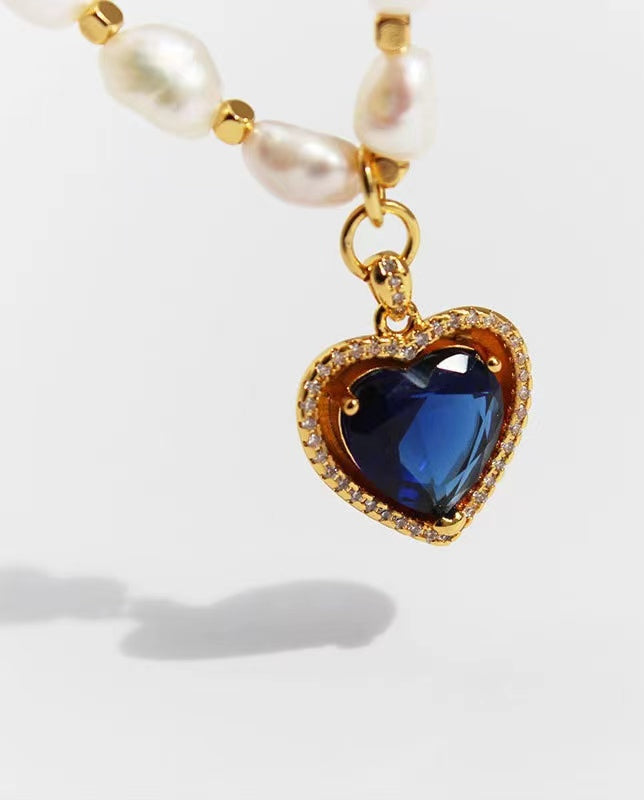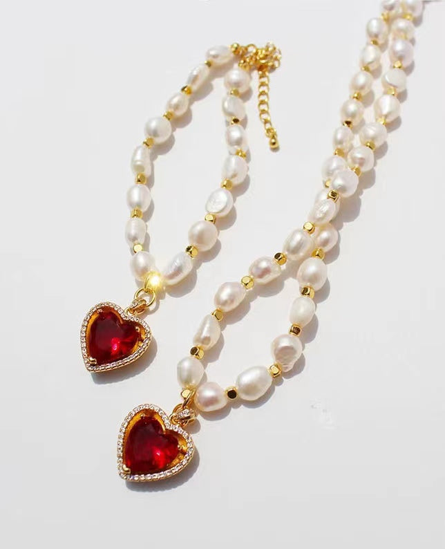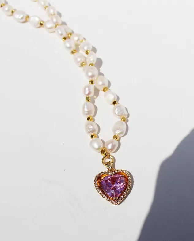 Collier cœur arc-en-ciel en perles d'eau douce véritables