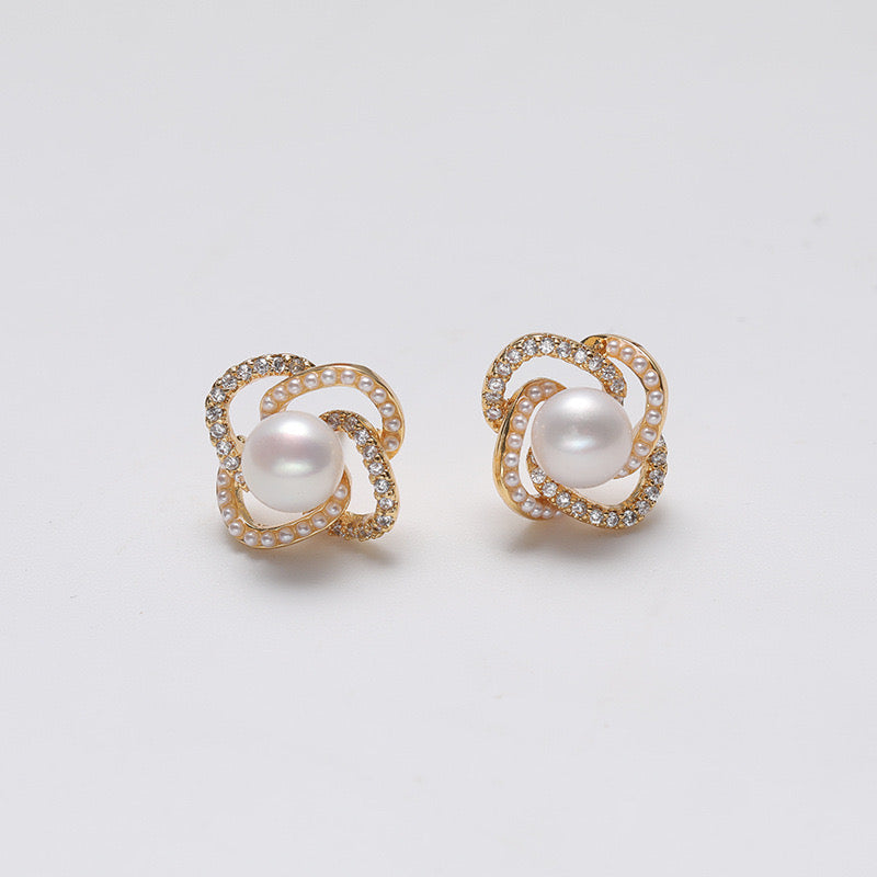 Boucles d'oreilles Greta en argent massif S925 et véritables perles d'eau douce