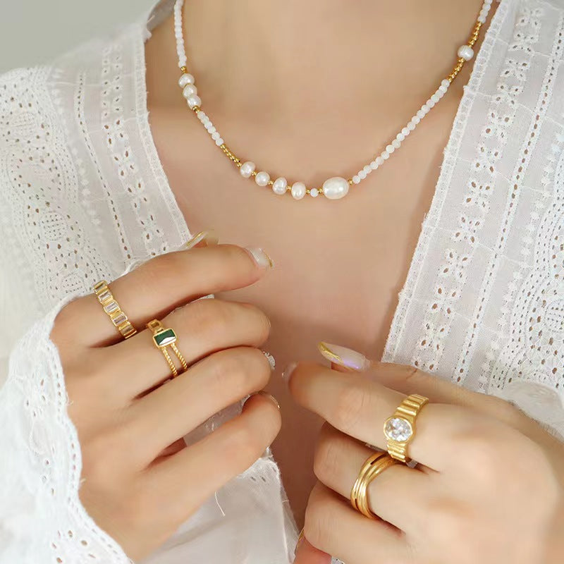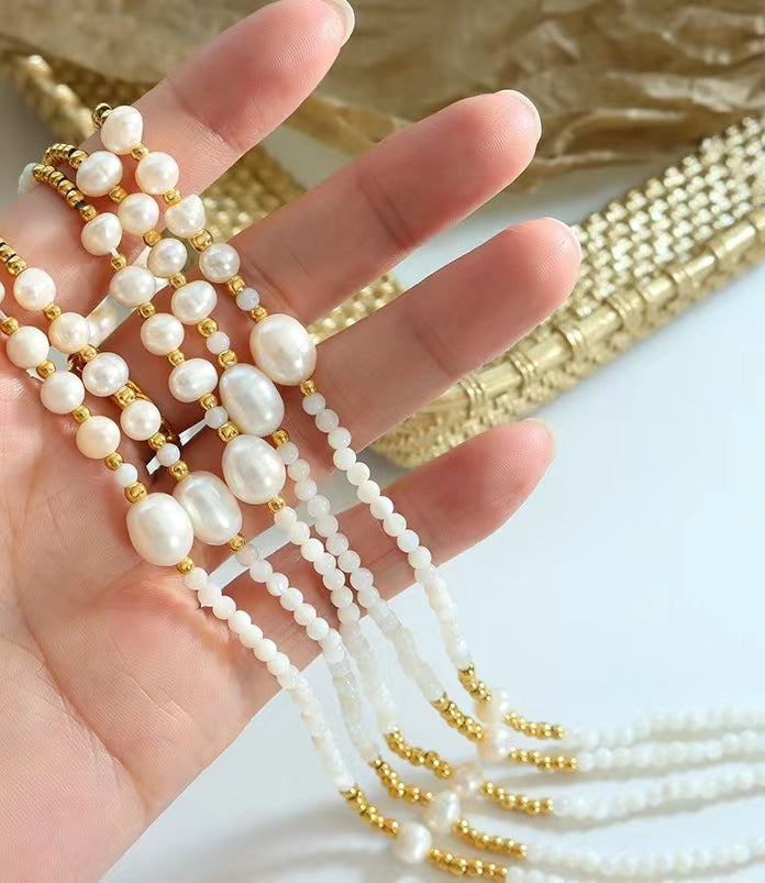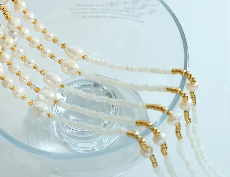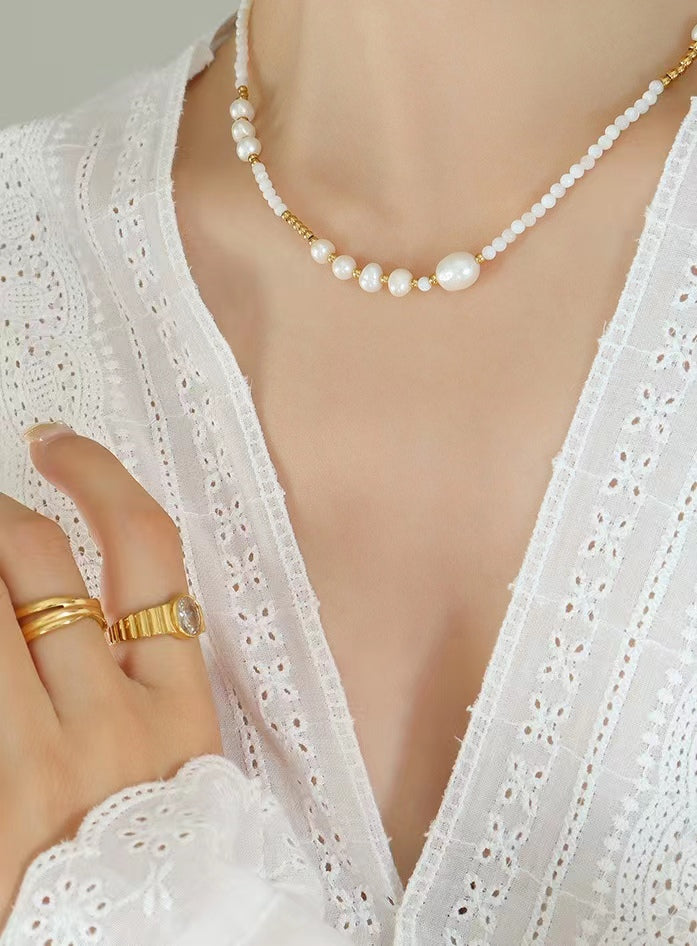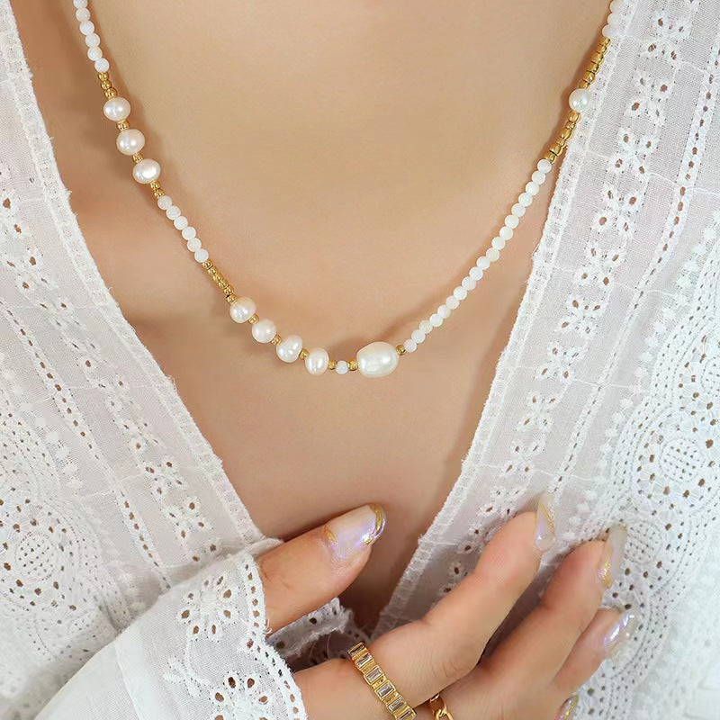 Collier Shirley en acier titane et perles d'eau douce véritables