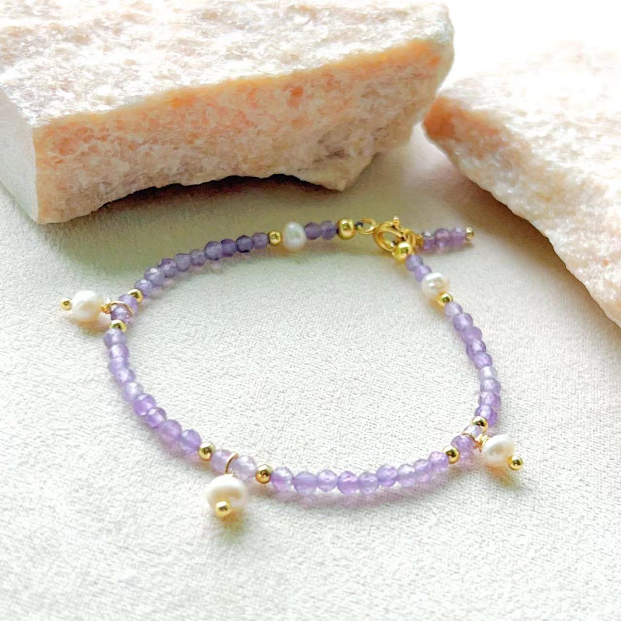 Inject a dash of luxury into your accessory collection with this Amethyst & Freshwater Pearl Rain energy Bracelet. Its string of precious stones and pearls features a polished finish, radiating sophistication and elegance with every glance. Crafted to enhance the feel-good vibes, this sophisticated bracelet will provide your look with a timelessly beautiful flourish.