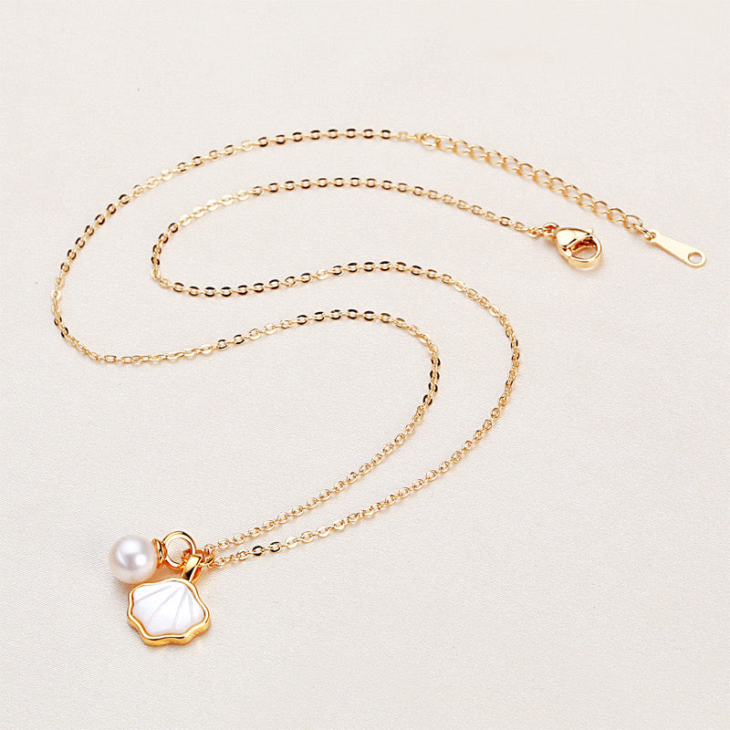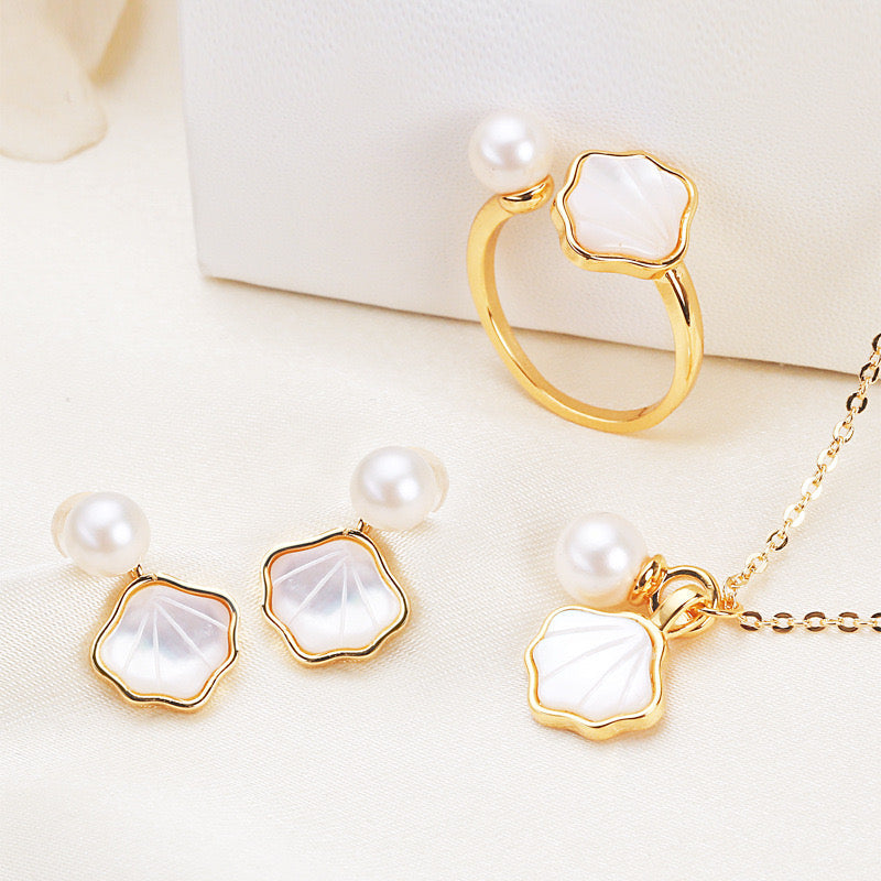 Brass Plated with 18K Gold Genuine Freshwater Pearl Lucky Shell Set