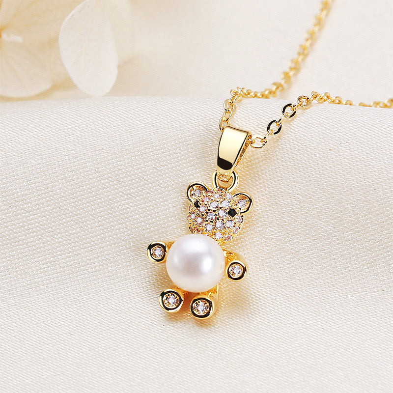 Brass Plated with 18K Gold Genuine Freshwater Pearl Hug Bear Set