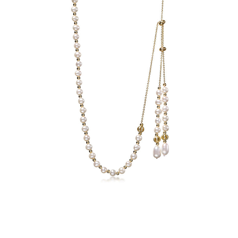 Add a touch of effortless sophistication with this adjustable lariat-style necklace, featuring alternating freshwater pearls and delicate alloy beads. Designed with two elegant drop chains that fall gracefully from the centre, this piece combines modern minimalism with refined femininity. The adjustable pull-chain allows versatile styling — wear it close to the neck for a chic collarbone look or loosen it for a relaxed, layered effect. Perfect for pairing with sweaters, dresses, or formal wear.