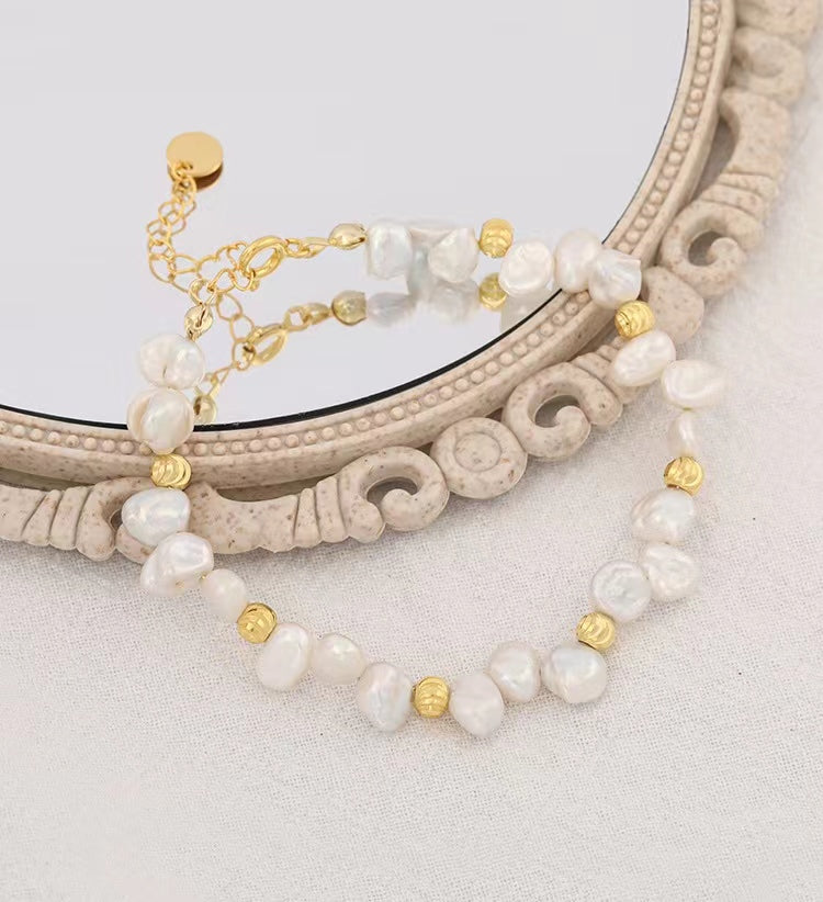 Elevate your style with this exquisite baroque pearl dew bracelet. Each lustrous freshwater baroque pearl is beautifully set in S925 sterling silver, creating a sophisticated piece that captures the essence of morning dew with timeless elegance.