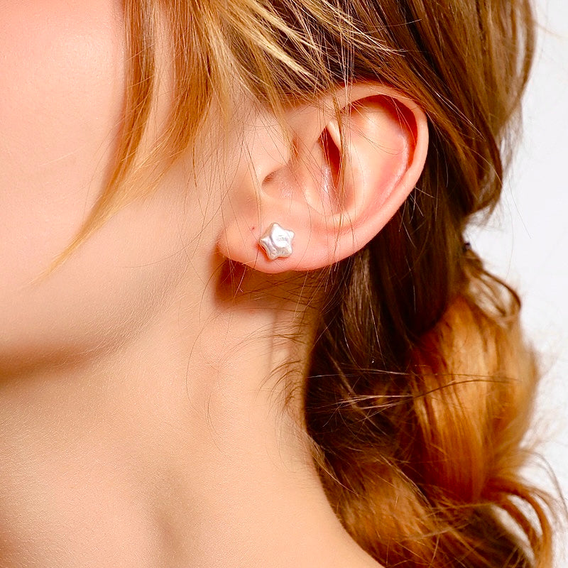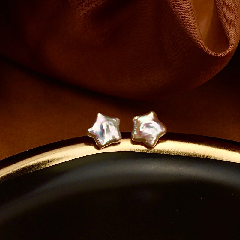 Elevate your style with these exquisite freshwater baroque pearl cute star earrings. Each lustrous genuine baroque pearl has naturally formed into a rare five-pointed star shape, creating a sophisticated piece that captures nature's celestial artistry with timeless charm.