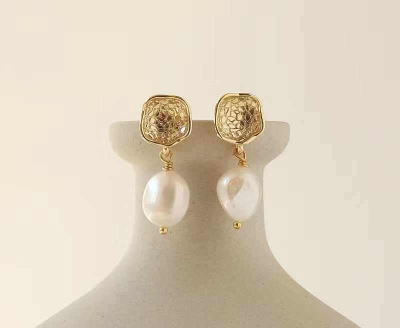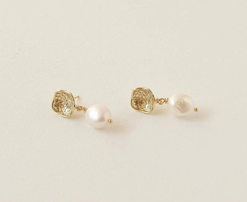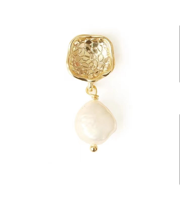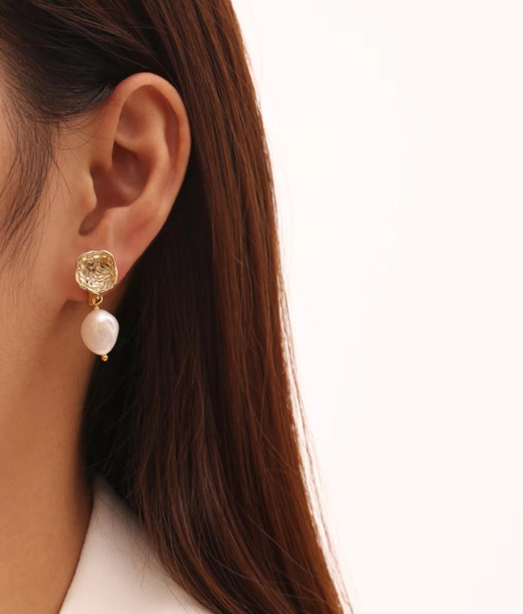 Genuine Freshwater Baroque Pearl Gold Flap Earrings