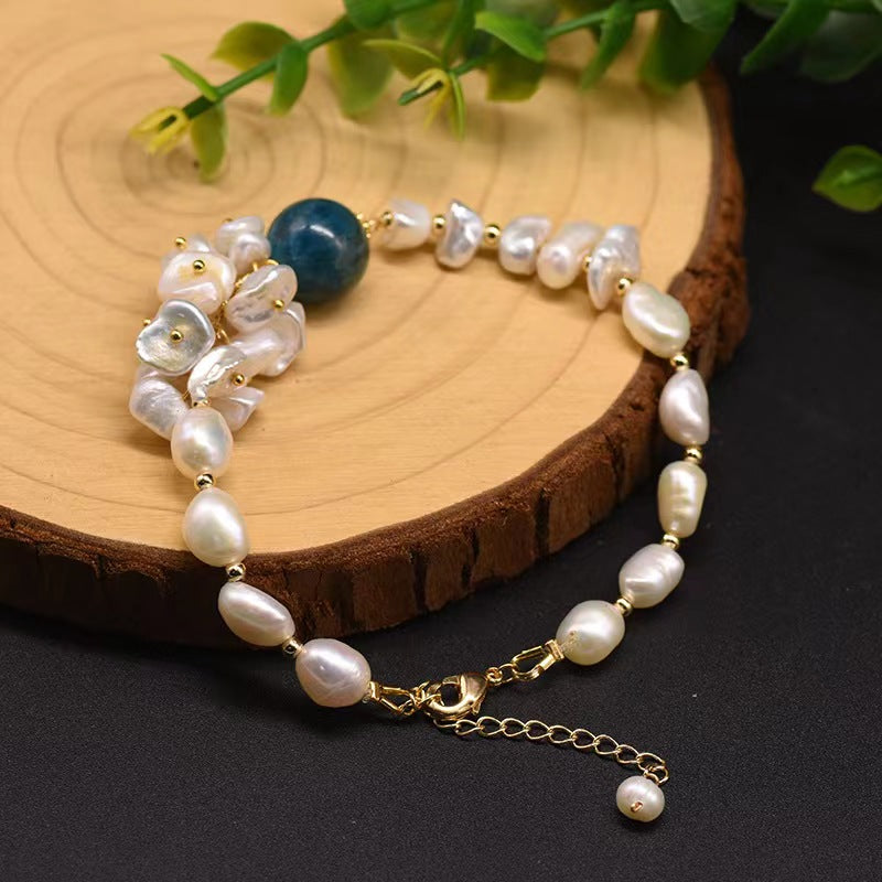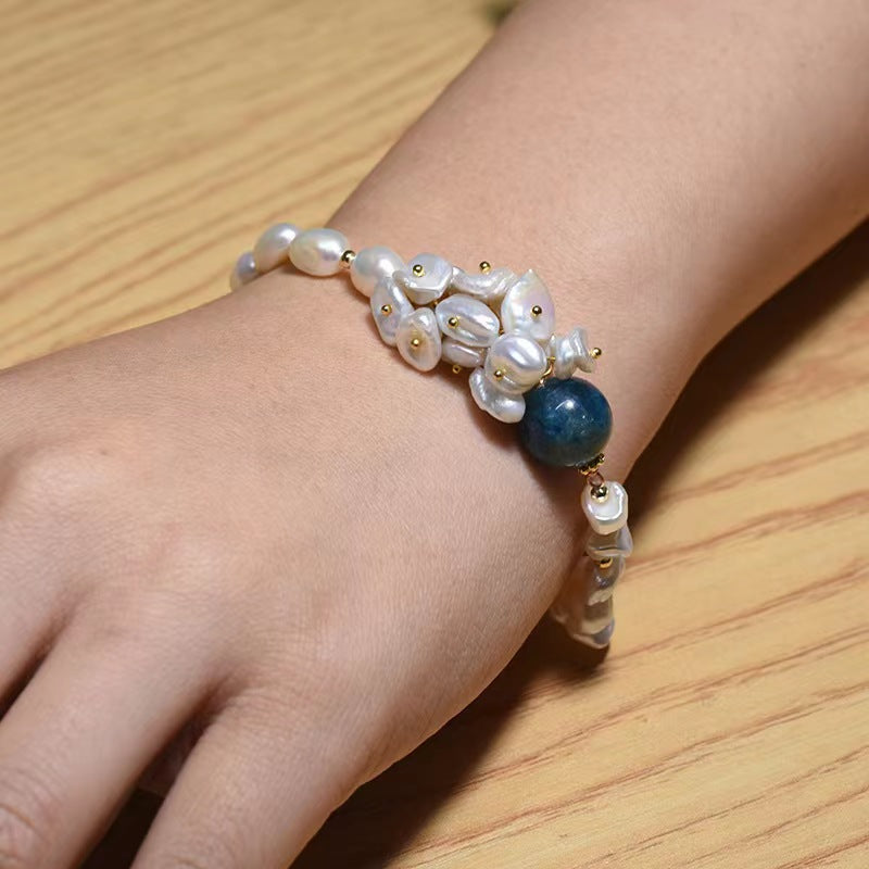 Elevate your style with this exquisite baroque pearl and kyanite bracelet. Each lustrous freshwater baroque pearl is beautifully complemented by natural kyanite stones, creating a sophisticated piece that adds instant elegance to any ensemble.