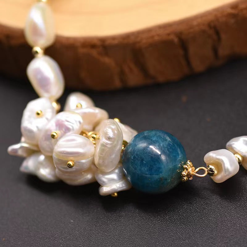 Ideal for dinner parties, gallery openings, or adding sophistication to your professional wardrobe. The beautiful contrast between lustrous pearls and vibrant kyanite creates a truly captivating piece.