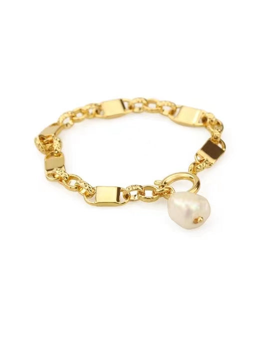 Genuine Freshwater Baroque Pearl Gold Lock Bracelet