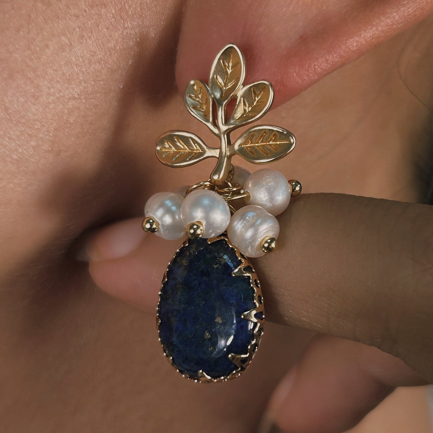 Genuine Freshwater Baroque Pearl & Lapis Lazuli Earrings (Limited Edition)