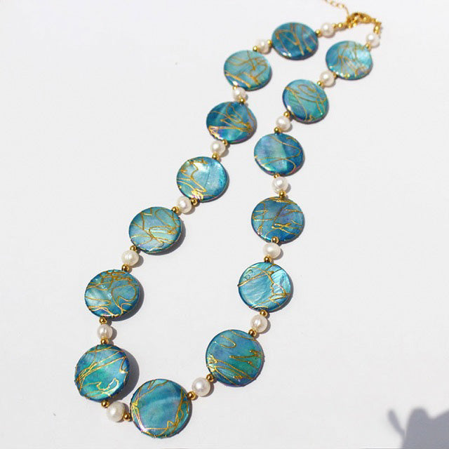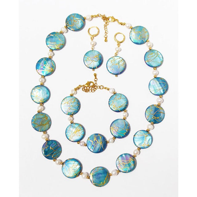 Genuine Freshwater Blue Shell and Pearls Blue Fantasy Set
