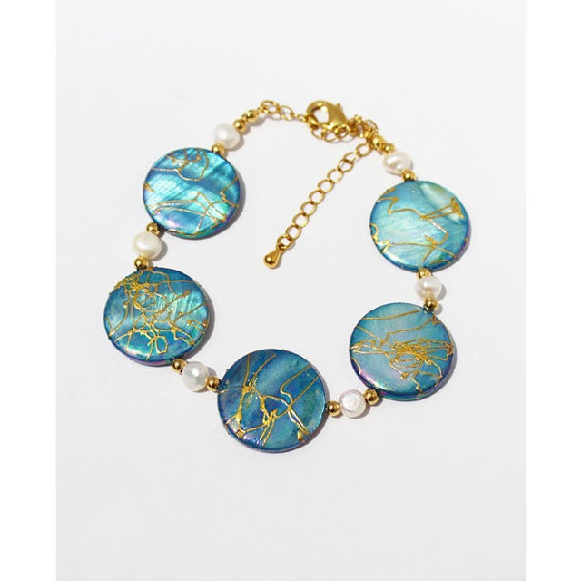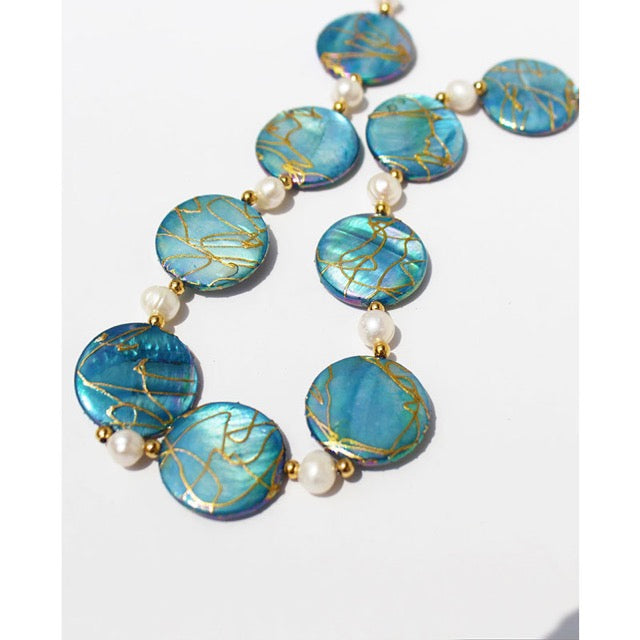 This exquisite jewellery set features lustrous genuine freshwater pearls beautifully paired with natural blue shells, creating a captivating combination that's both timeless and contemporary. Each piece is carefully crafted to bring the serene beauty of the ocean to your everyday elegance.
