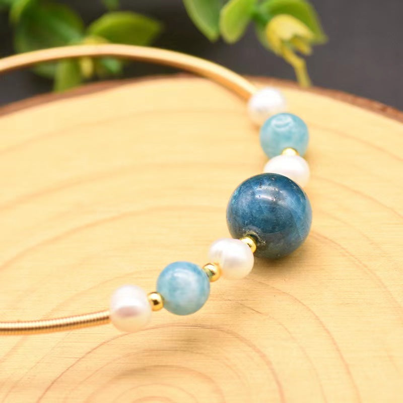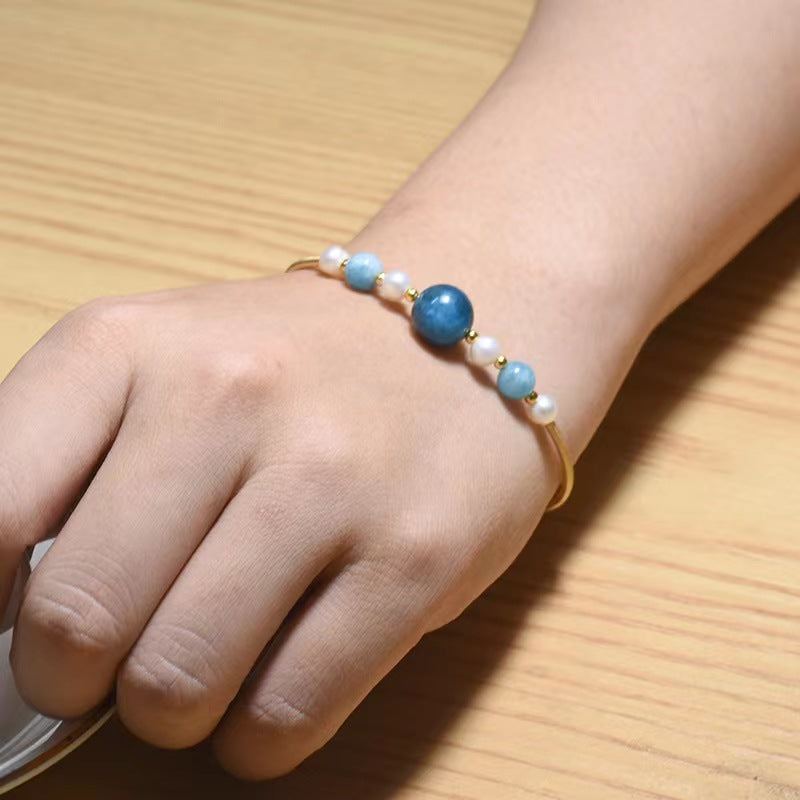 - Vibrant aquamarine and kyanite gemstone accents